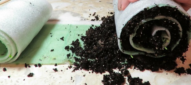 Growing seedlings in a snail is a way that saves space and soil. The seedlings in the snail are evenly illuminated and well ventilated, without interfering with each other's development. The material for the seedling rolls must be dense.