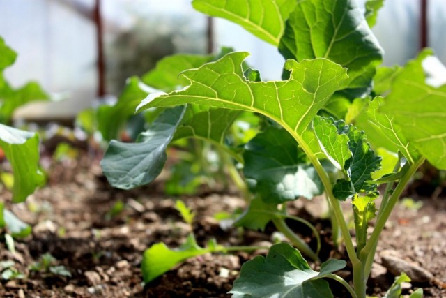 In glass greenhouses or film greenhouses, where the soil warms up in early spring, the sowing of seeds of early and mid-season varieties begins as soon as the snow melts, from the second decade of April. After 4–5 days, shoots appear. Broccoli seedlings that love cool temperatures and fresh air will thrive in an unheated greenhouse. If necessary, you can additionally cover the seedlings with foil. Such conditions will allow the seedlings to grow strong, healthy, harden well and easily transfer the transplant to the garden.