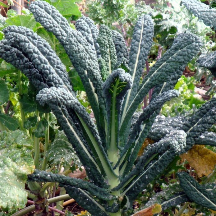 The plant forms a large rosette (about 1.5 kg) in 1.5–2 months. After cutting off mature leaves, new ones appear on the same stem. So it is enough to plant cabbage once a season to harvest constantly.
