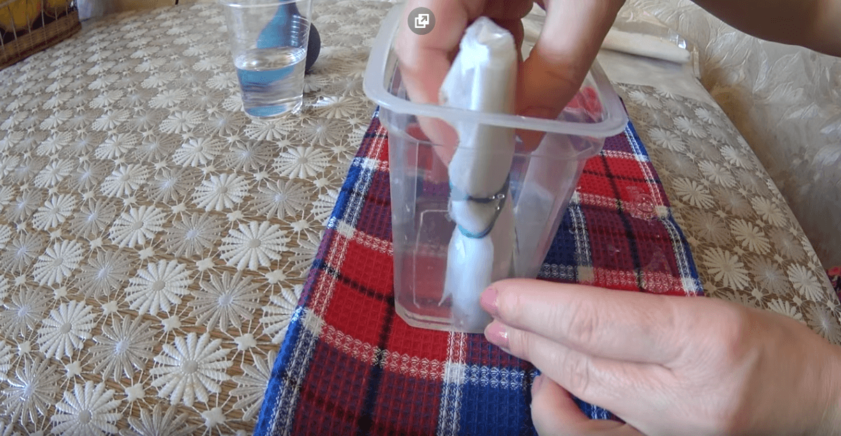- Fasten the finished "snail" with an elastic band and place it in a jar, on the bottom of which pour a little water or a weakly concentrated solution of universal fertilizer.