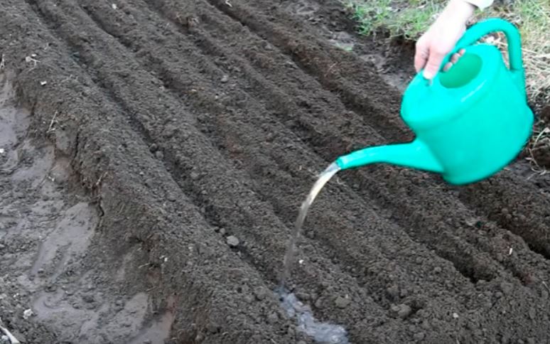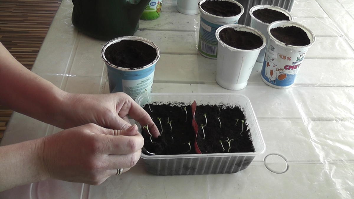 - From above, the planting grooves can be sprinkled with sand or the remaining soil. Sowing depth - 0.5 cm.