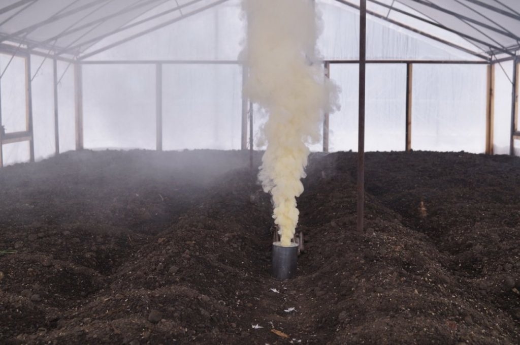 The required number of tablets is placed in a container, the wick is set on fire and left to smolder in the greenhouse. The room must be tightly closed. Fumigation is carried out 15 days before planting seedlings of any culture at an air temperature of at least 12⁰С. The soil must be dry to a depth of 10 cm.