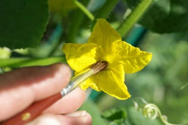 In good weather, pollination is usually not a problem, since insects take on this role. But under another set of circumstances, you can help plants pollinate mechanically. To do this, first brush the brush over the male flowers (they are with pollen), then along the female ones (with the rudiments of cucumbers).