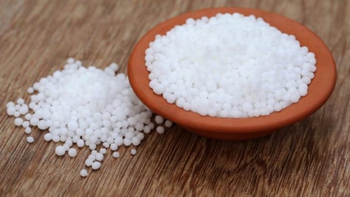 - Urea - fertilizer in the form of white granules - supplies plants with nitrogen and accelerates the growth of vegetative mass