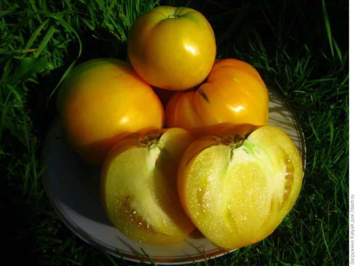 From 1 m2 gardeners harvest 3-4 kg of tomatoes per season in the open field and 2 times more in the greenhouse. It is used fresh for making salads, sandwiches. It is completely unsuitable for canning, but it is used for making juice.