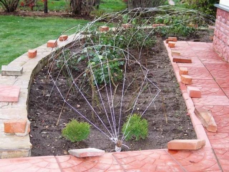 If a curly rose is entwined around the base of the support, it is insulated directly on the arch. The structure is wrapped in burlap, arcs are installed and two or three layers of covering material are laid. At the same time, make sure that the arcs do not touch the plant;