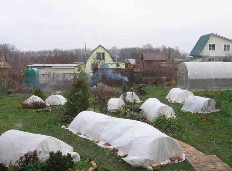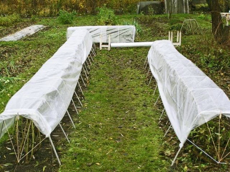- Covering material: geotextile, lutrasil, spunbond. It not only protects against frost, but also removes excess moisture, preventing condensation from forming during the thaw period;