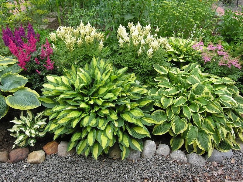 This perennial plant of the Asparagus family is common in the Far East, China and Japan. It is appreciated for its large ornamental leaves and its ability to grow in the shade. Within a short time, the hosta forms a full-fledged lush bush up to 120 cm high, which occupies a large area around which no other plants grow. The host's root system is powerful and well developed. It provides a strong attachment of the bush to the soil. The stem is short, erect, covered with a thick dark green skin. The leaves are collected in a basal rosette and are arranged on long petioles. They can be round, lanceolate, heart-shaped. The surface of the plate is matt or glossy, bumpy or smooth. The color of the foliage can change during the season. The most common varieties are with yellow, gray or bright green foliage. Bell-shaped flowers are collected in inflorescences. The petals are purple or pink. After flowering, the plant produces fruit in the form of a box with small black seeds.