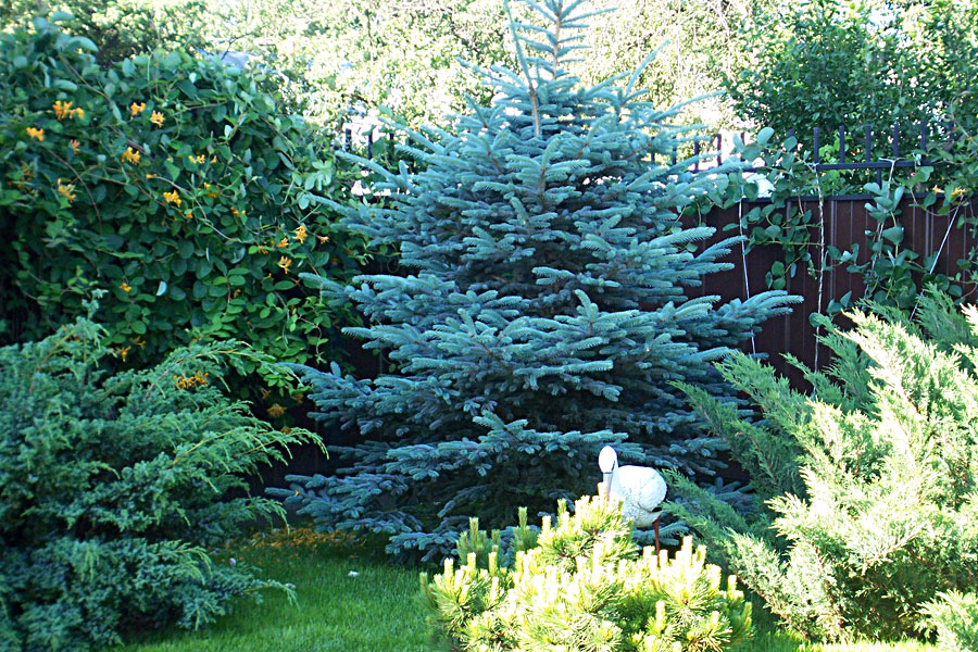 Near artificial reservoirs, the unpretentious glaucous spruce, which loves moist soil, will look organic. Together with colorful perennial plants and flowers, this blue beauty looks especially beautiful.