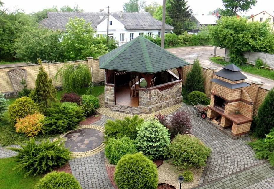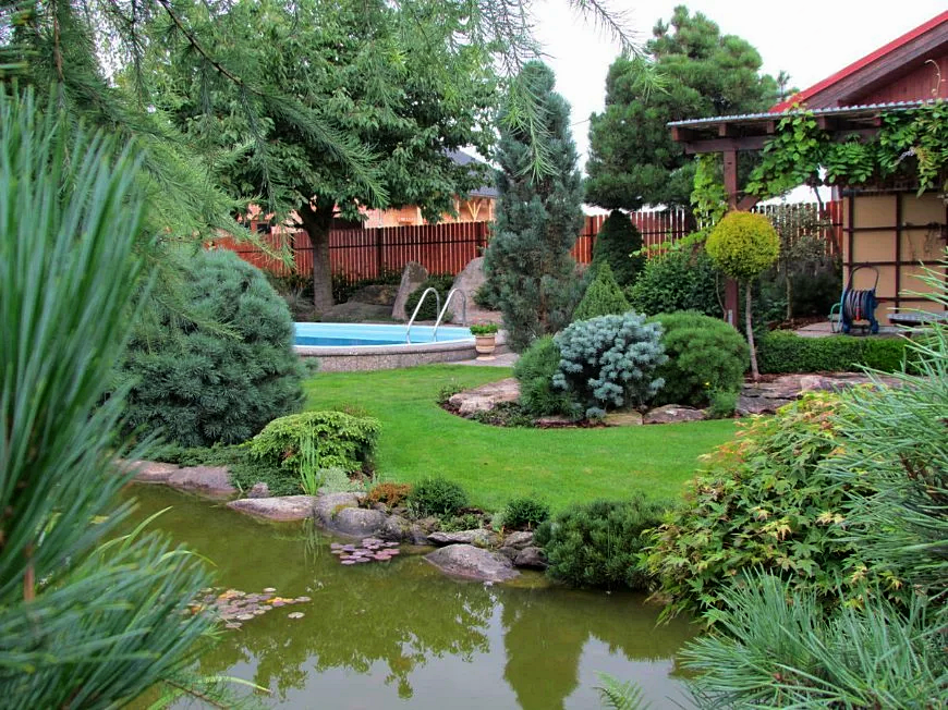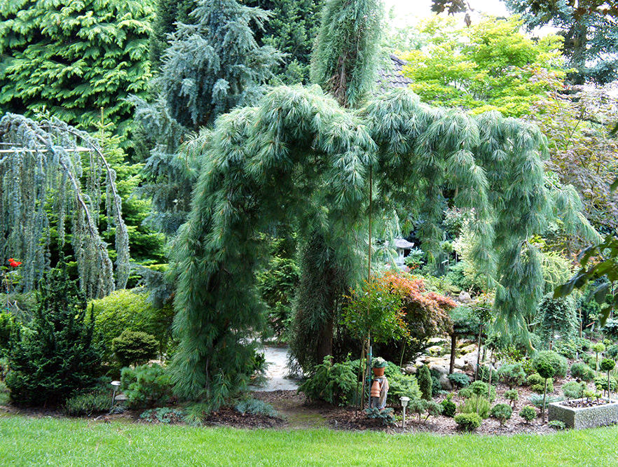 Near recreation areas, majestic conifers will always be welcome. The spectacular Serbian spruce Pendula looks very beautiful near small architectural forms: arbors and pergolas.