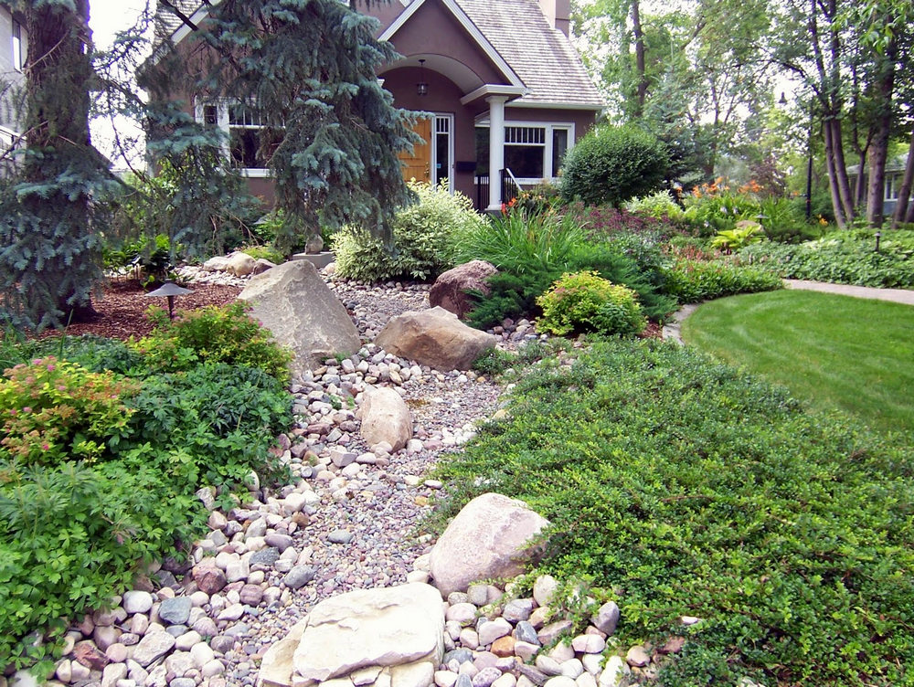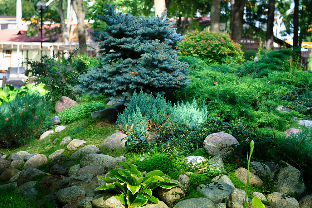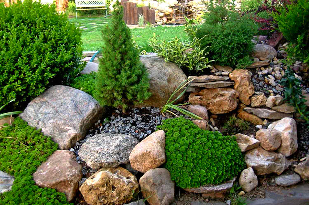 Little Christmas trees look spectacular on the "banks" of dry streams in the company of ground cover perennials and herbaceous plants.