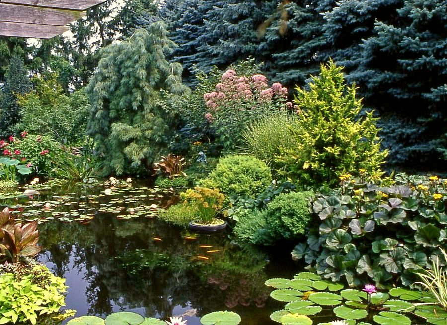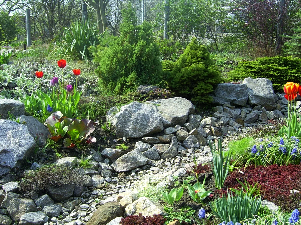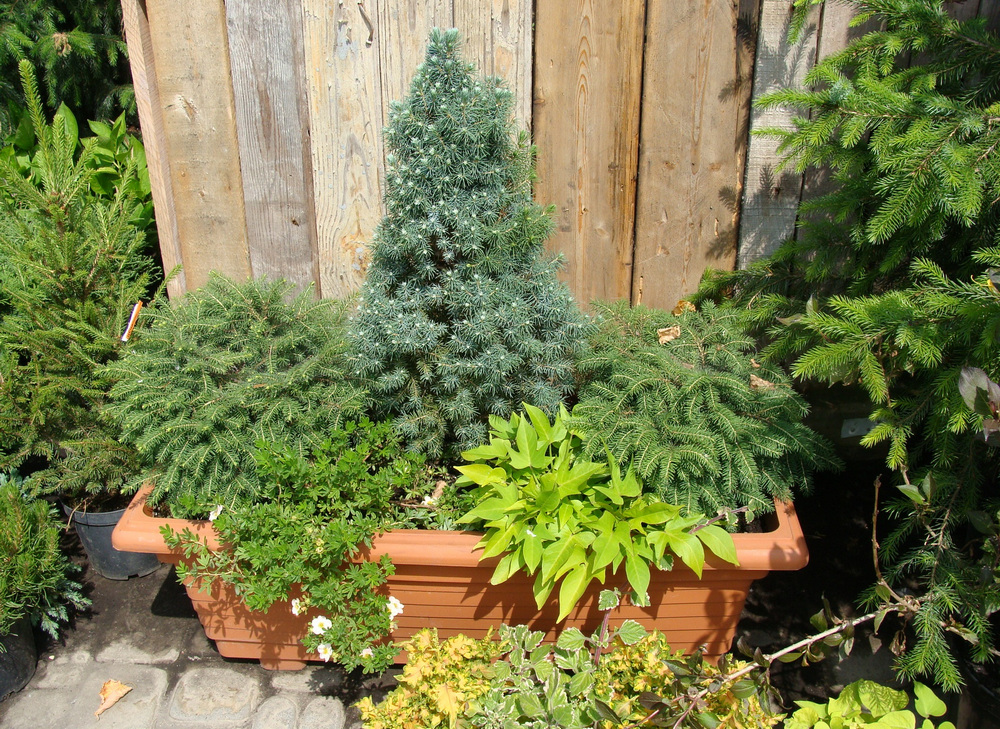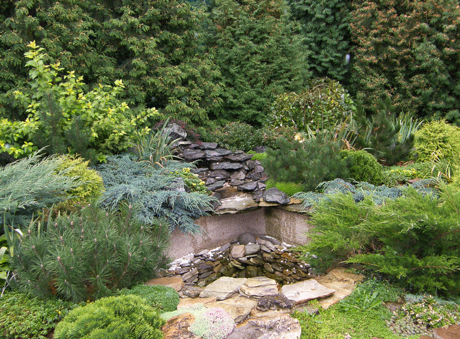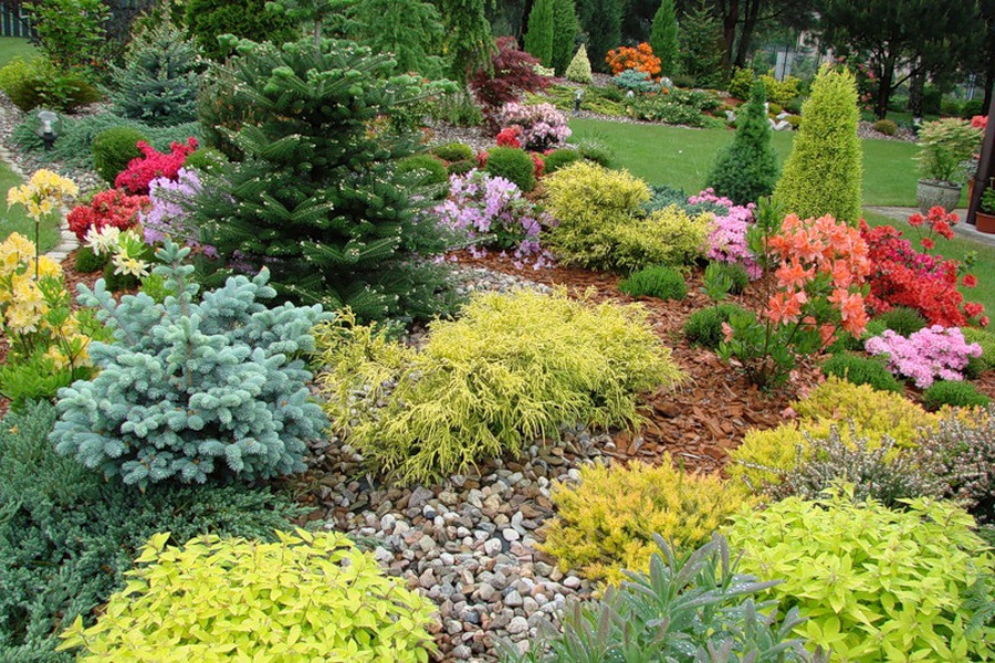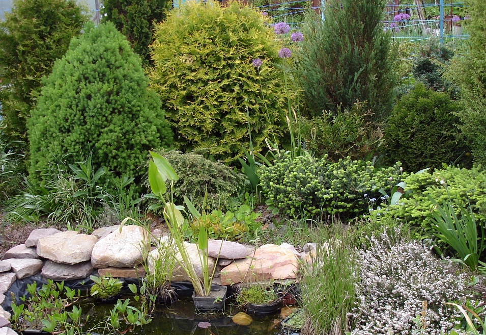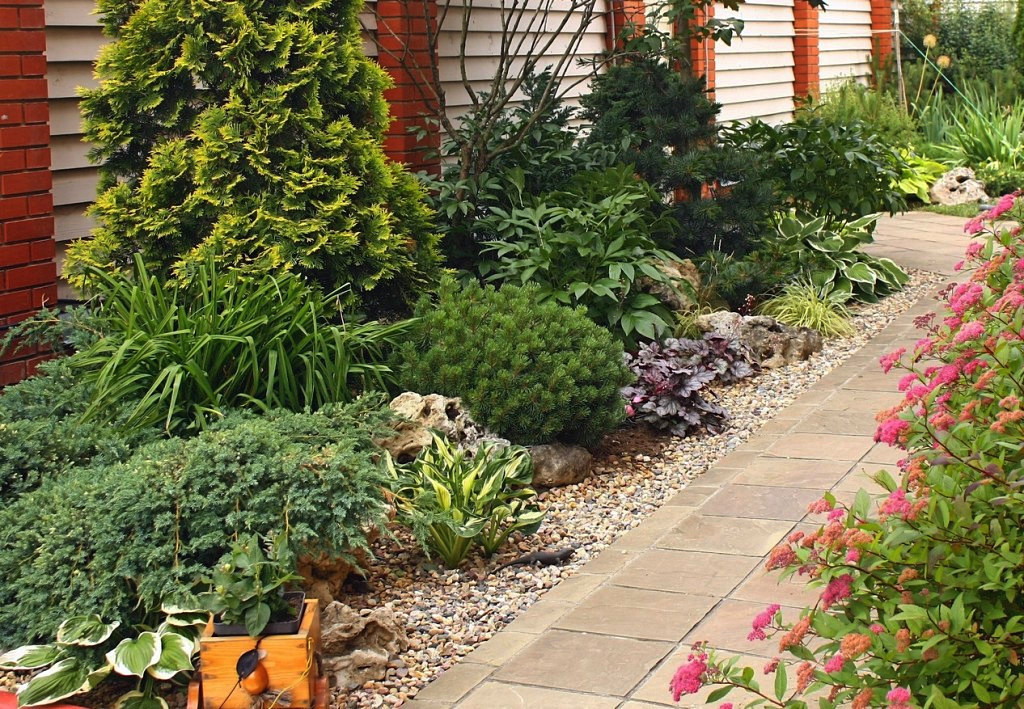 Along the garden paths, it is good to plant the low-growing Konik spruce, so named because of its conical shape.