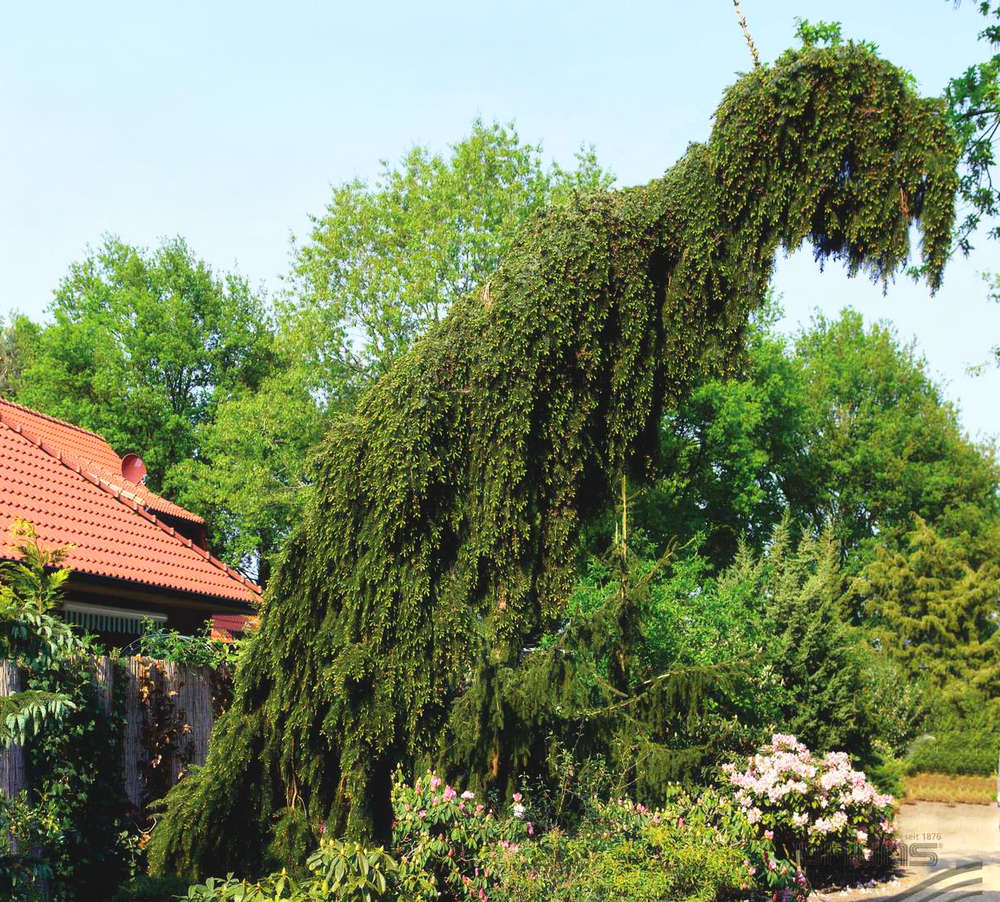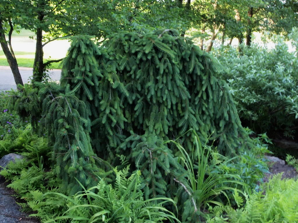 Tall trees will look good in large parks and squares as tapeworms with a lush crown. The most famous spruce, suitable for these purposes, is the prickly spruce Koster, which grows up to 15 meters in height with bluish-green needles. And the extraordinary weeping Inversa spruce has branches hanging to the ground, which gives this tree a very decorative look, both in a single planting and in combination with other plants.