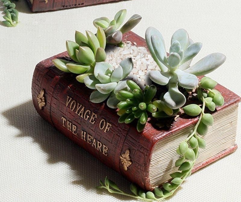 Broad-leaved succulents will take root well in a small vessel. They will look like sprouts emerging from a nut.