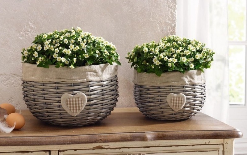 A wicker basket filled not with mushrooms and fruits, but with flowers will look no less extravagant next to a suitcase flower garden.
