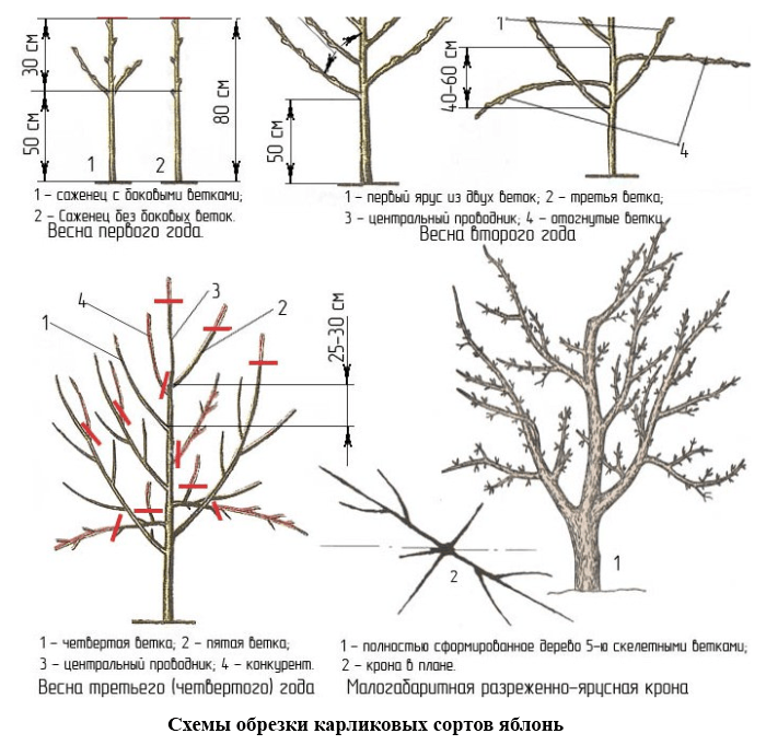 Young apple trees under 5 years of age are pruned to form the correct crown and intensive formation of young shoots. The crown shape chosen for a young apple tree is preserved and maintained throughout the entire life cycle of the tree (see figure).