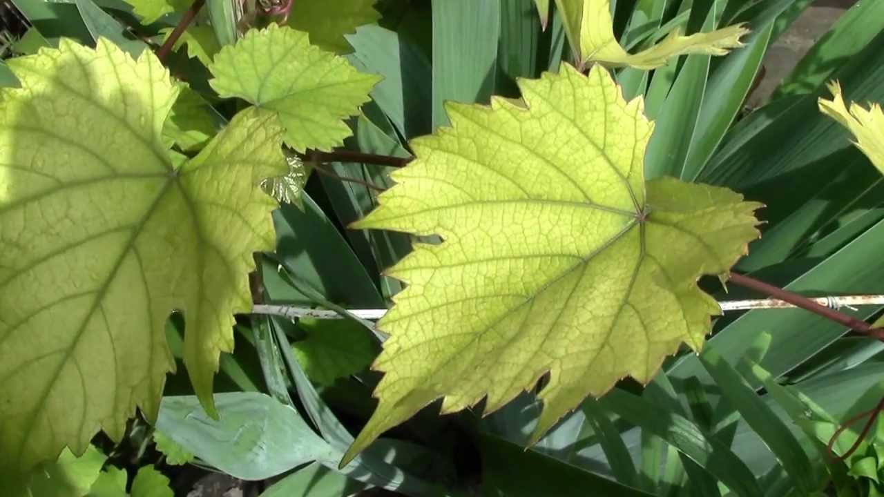 This type of grape leaves signals a lack of iron, which is easy to eliminate by spraying them with iron vitriol.