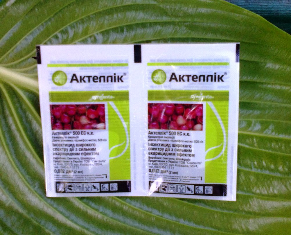 Actellic is an insecticide that helps in the fight against insects in everyday life. It helps to get rid of such pests as the moth, tick, aphid, sawfly, moth, thrips, false scale insect, whitefly, scale insect, weevil and others. Available in 2 ml ampoules. It is used to ensure the safety of fruit trees, ornamental plants and indoor flowers from all sorts of pests. Often this drug is used in grain storage areas, as it also saves from barn insects.How to use Actellic