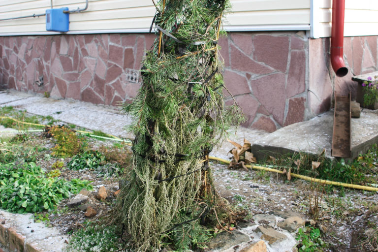 To protect the honeysuckle, the shoots are collected in a bunch, covered with spruce or pine branches and tied