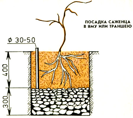 It is advisable to lay a drainage layer at the bottom of the pits, which will prevent stagnation of water. Then they are filled with fertile soil, to which you can add 20–40 g of mineral fertilizers containing nitrogen, phosphorus and potassium in a ratio of 1: 5: 1.