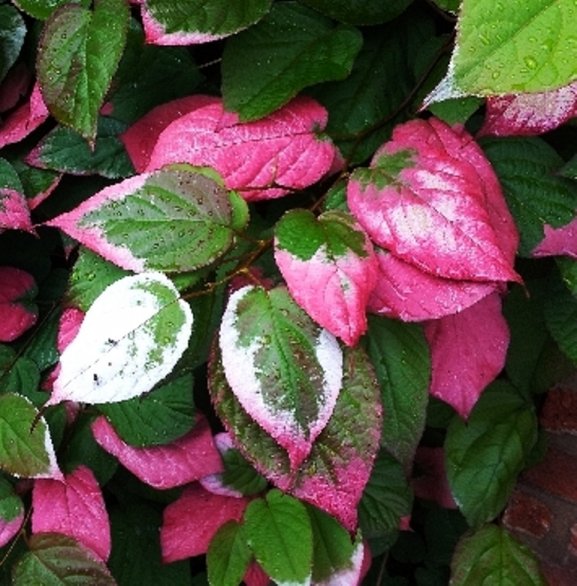 The lack of fruit on male plants of actinidia kolomikta is more than compensated by the very decorative foliage