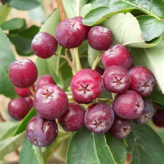 | Pomegranate | Early autumn | Winter-hardy, high-yielding, early fruiting (from 3 years of age) | Differs in the size of fruits that have a sweet and sour taste without bitterness | Hybrid of common mountain ash and hawthorn. Tree up to 4 m high |