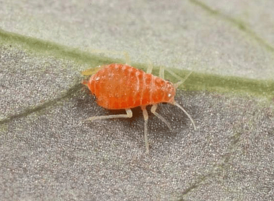 Barberry aphid is a small orange insect up to 2.5 mm in size. It feeds, like its larvae, on leaf juice. Colonies of these pests live on young shoots and the underside of leaf plates. If the aphid is immediately visible on the shoot, then it is noticed on the leaf only after it begins to curl and dry out.