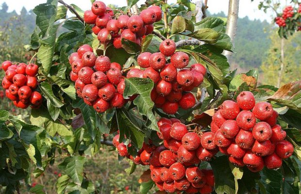 The fruits of the hawthorn are medium-sized, but the plant has a good yield and a long productive period.