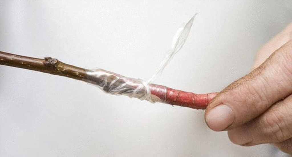A more difficult option is budding. In this case, not a whole branch is used as a scion, but one growth bud. It is cut off along with a layer of surrounding tissue, trying to touch it as little as possible in the process. The resulting "shield" 3-4 cm in diameter and 2-3 mm thick is inserted into an incision in the rootstock bark in the shape of a T or X. In the spring this bud should give a new shoot. Then the fixing structure can be removed.