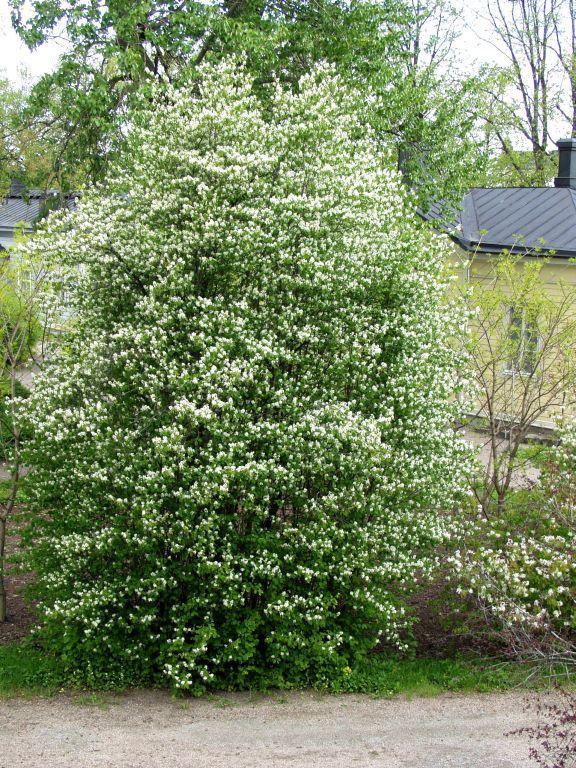 The plant is bushy, 4–5 m high. The crown is very thick and wide. Even without regular pruning, it takes on the correct oval shape. The bark on young shoots is brick-colored; this shade gradually changes to gray-brown.