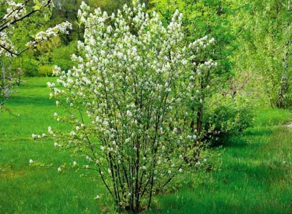 - irga low (pumila). A bushy, light-loving plant 1–1.2 m high. Prefers a light nutritious substrate. It is found mainly in North America, most often at the edges of deciduous forests. A shrub with many shoots and a very dense crown. The leaves are small, 2–2.5 cm long. The diameter of the flower with snow-white petals is 0.8–1 cm. The fruits are edible, the skin is black. The cuttings do not root very well;