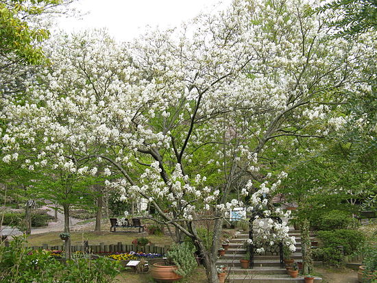 This is a shrub 5–6 m high or a tree that grows up to 8–10 m. In nature, there are also "champions" with a height of 15–18 m. Shoots are thin, flexible, drooping.They descend gradually, forming a wide crown, similar to a tent. The bark is reddish. The leaves are large, about 10 cm long. The reverse side is almost white due to the dense soft edge, similar to the pile. Up to 5 years, shoots grow quickly, then the rate gradually slows down.