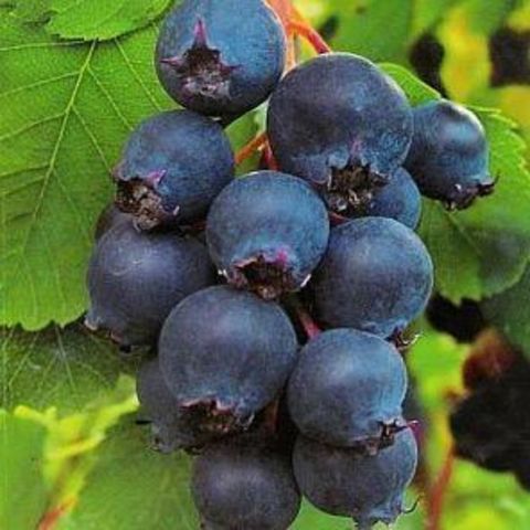 - Northline. The variety is bred on the basis of alder irriga. It is appreciated for its high yield and large fruit size. The height of the bush is about 1.5 m. The erect shoots gradually disappear. The bush consists of many trunks. The berries are collected in 12-15 pieces in dense clusters, from a distance they resemble small grapes. In shape, they can be both rounded and elongated. The harvest ripens in large quantities. The first fruits are tried 3-4 years after planting. Berries can be harvested mechanically;