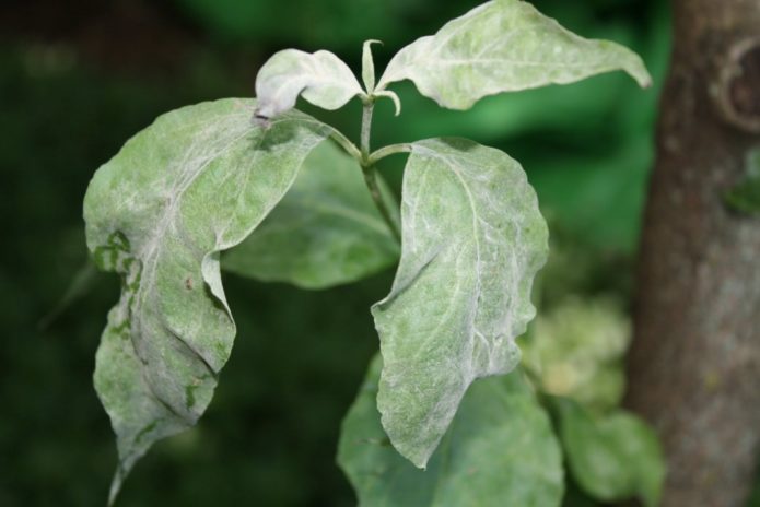 - powdery mildew - white bloom on all parts of the plant, mostly young bushes are sick;