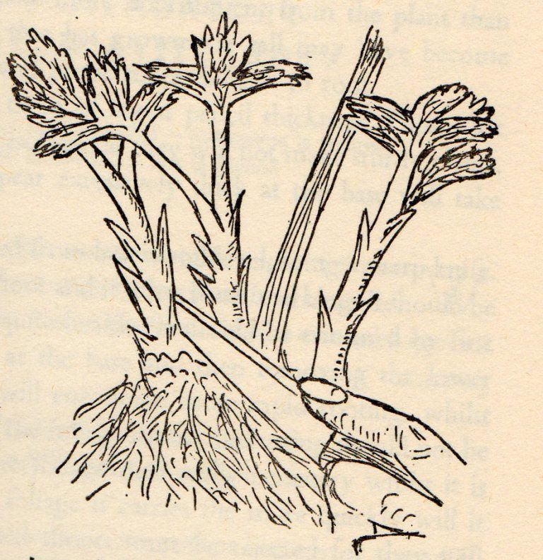 - Cut the stalks with leaves from the cutting, leaving small hemp (it is convenient to hold the bud for them).