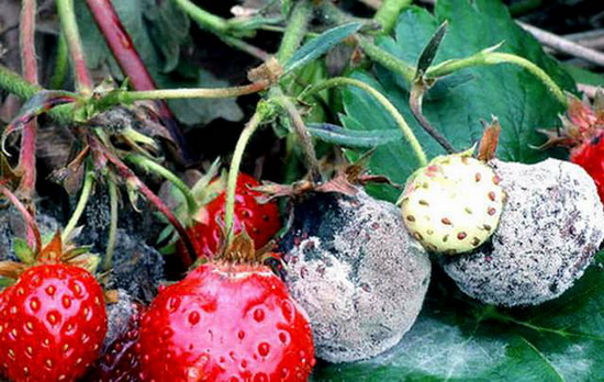 Gray mold is the most common fungal disease in strawberries. Gray rot spores settle in the soil, as well as on all parts of the strawberry, including the seeds. The fruit, attacked by the gray rot parasite, becomes watery and then dries up, but at the same time it stays on the stalk for a long time and is a carrier of infection. If the berry is affected, the yield loss can be very significant (up to 80%).