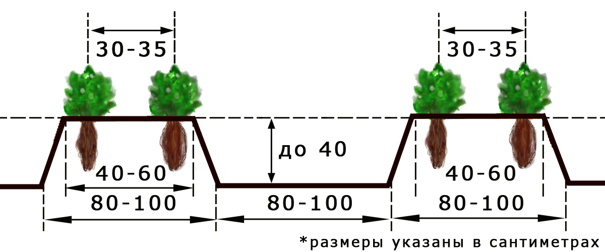 The most traditional method is considered to be planting with ribbons, which can be either double-leaf or single-line.