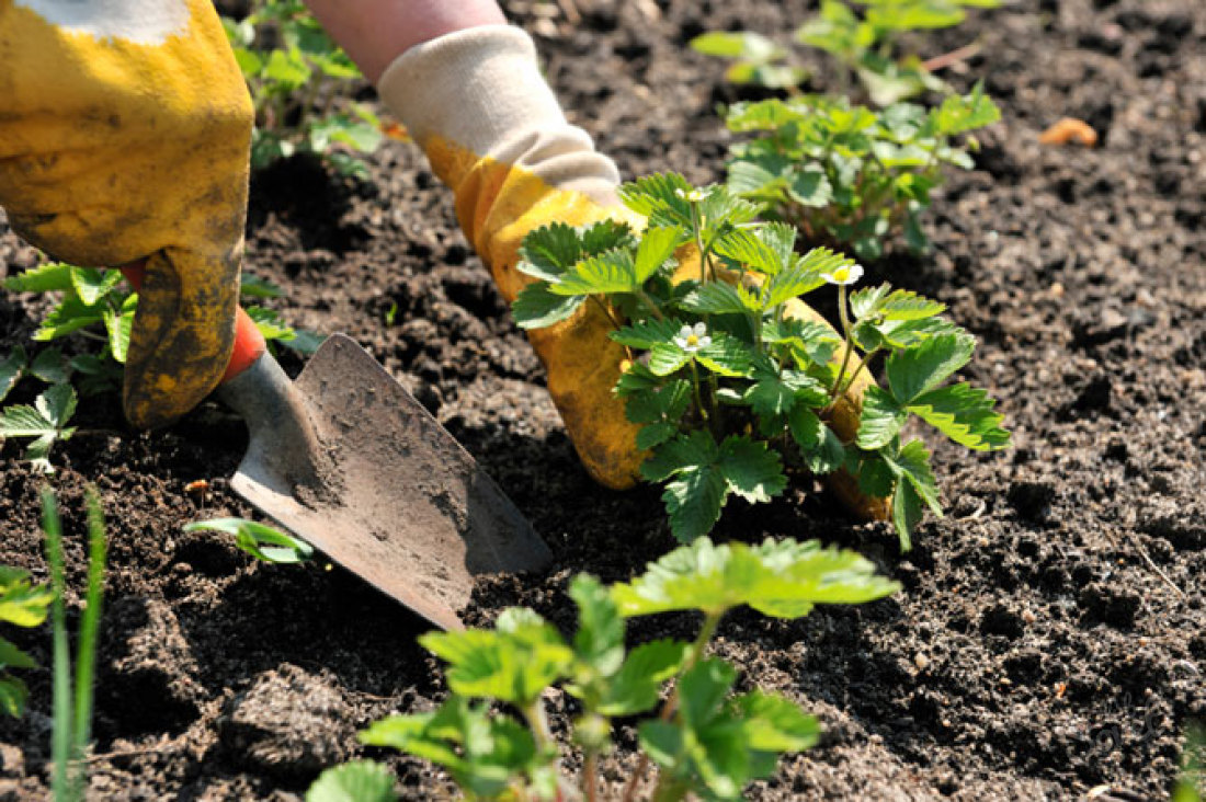 - In the place allocated for strawberries, we dig the soil to a depth of about 30 cm, using both a pitchfork and a shovel. And also during the digging, we remove all weeds and stone inclusions.