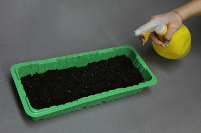 - Immediately before planting, the soil should be moistened with a sprayer.