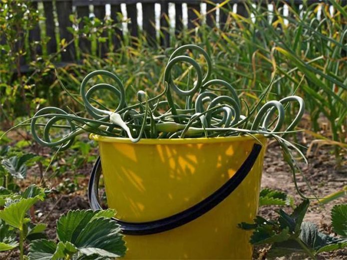 - infusion of garlic and onion, which can be prepared both from arrows and from plant heads at the rate of 1 kg of raw materials per bucket of water;