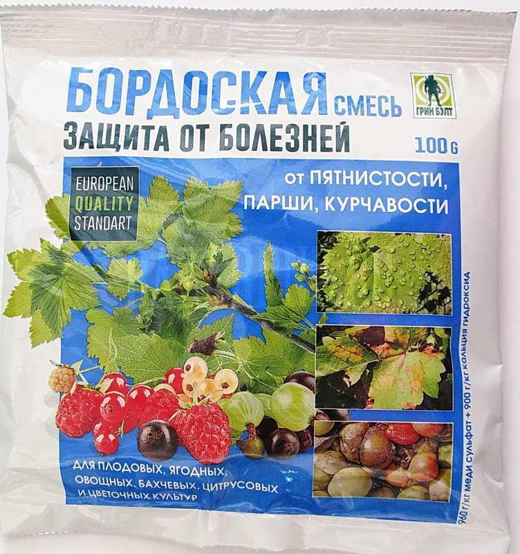 | Bordeaux mix | It contains lime mixture and copper sulfate. 1 liter of 1% solution per 10 sq. m. | Bordeaux liquid eliminates scab, spotting, and some types of rot. In hot weather, plants cannot be sprayed - they can burn out. |