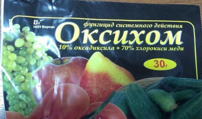 | Hom, Oxyhom | Preparations based on copper oxychloride. Diluted at the rate of 20 g per 10 liters of water. | Penetrating into the spores of fungi, the drug helps to eliminate them. |
