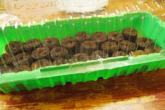 - Three seeds are placed in tablets, after which they are moistened from a spray bottle.