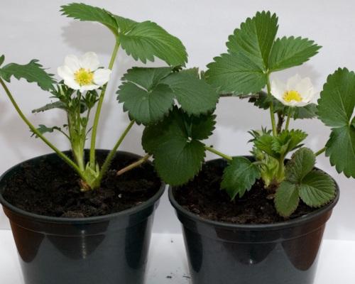 Mainly small-fruited remontant strawberries without whiskers are grown in pots. It is very good to plant varieties such as Alexandria, Ali Baba, Seasons, Snow White, Weise Zolemacher.