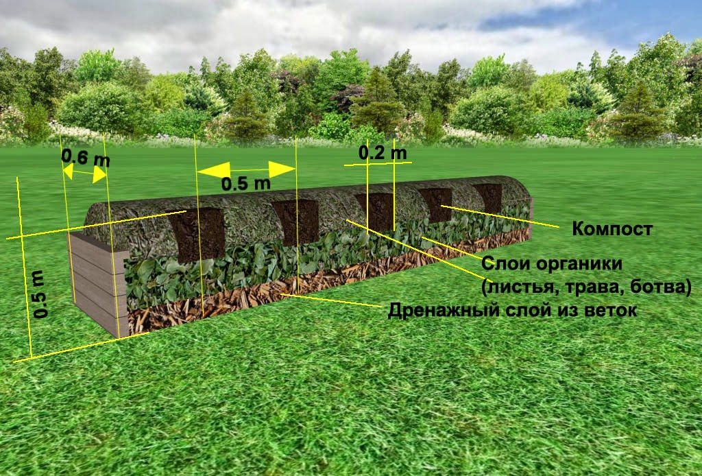 - In the furrow, you need to lay tree branches, clean plant residues, neutral soil. All this will serve as a drainage channel - a store of heat and nutrients.