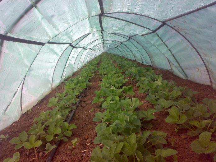 In regions where autumn and winter do not reach -20 ° C and below, strawberries can be propagated in film tunnels. These are portable structures consisting of arcs and film. It is convenient to plant strawberries in them and prepare young seedlings for the next period.