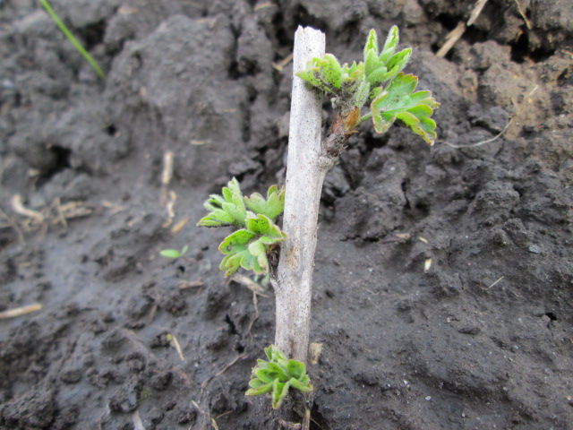 - The gooseberry graft is overgrown with shoots that need to be pinched to get a thicker crown. The currant stock also produces shoots below the grafting site, which must be broken out.