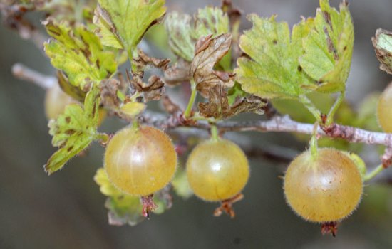 With a lack of an element, young shoots develop poorly, the stems give few lateral processes. Leaves curl, dead areas appear on them, edges die off. The berries become smaller, the yield is significantly reduced. An overabundance of potassium is indicated by falling ovaries, leaves and gooseberry berries.