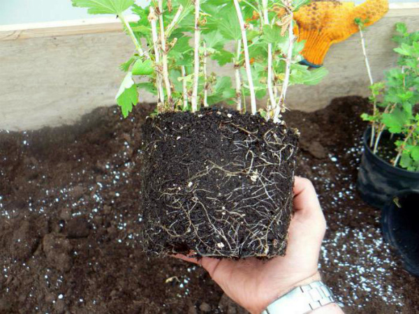 For a short time (several hours or days), the gooseberries are overexposed in a container with water, immersing the roots in it to the level of the root collar.