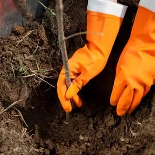 - A small mound is formed in each hole, on which the roots of the seedling are placed and covered with earth. The soil is well compacted, making sure that the root collar of the seedling is at the soil level as a result.